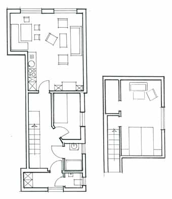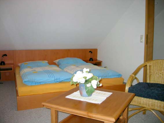 In der 1. Etage ein großer Schlafraum mit Doppelbett.